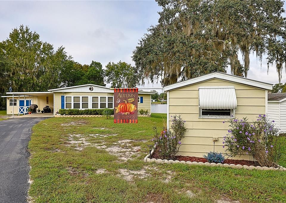 Looking to live your best lake life? Look no further! This beautiful 3 bedroom 2 bath home has everything you need and more! This home is on lake Henderson and is part of the Tala Apopa Chain Of Lakes. The house sits on a .27 acre lot, a long driveway perfect if you have multiple cars or love to entertain, parking won't be an issue here!! lovely manicured landscaping, meticulously maintained exterior and a carport that leads to one door to the inside of the home and another door to your own workshop. Entering the home you'll be pleased by the clean and calming paint colors throughout, your living room has an electric fireplace, high ceilings and ceiling fan. you have your dining room just off the living room that has built in storage and the the left is your Gally kitchen with extra cabinet space on adjacent wall and in your Florida room that is under heat and air that has a build in wine rack and counter with a space to have an additional refrigerator just off the Florida room you have a guest bedroom. Just down the hall off the living room you have your laundry room, another guest bedroom, spare bathroom and your primary suite with dual closets and primary bathroom. Enjoy your Florida room where you'll never want to leave with a breath taking view that enters to a screened porch area to enjoy on a breezy day. Taking some steps down you'll be pleasantly suprised to see your 2023 remodeled boat dock giving peace of mind. Metal roof, a 2022 HVAC(sellers recently replaced the compressor) Call to take your private tour today!!
