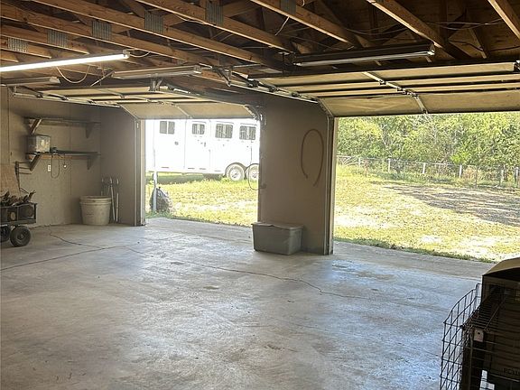 Metal hay storage buildingOpen grazing landMature trees
