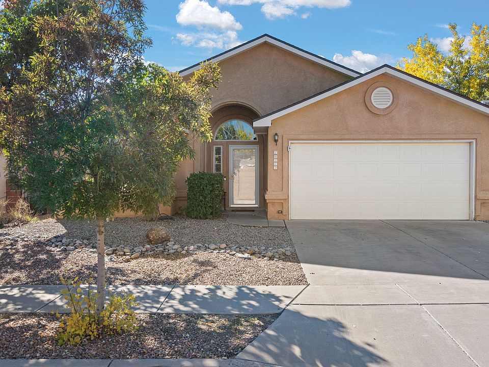 Welcome home to this enchanting single-story residence nestled in the Northwest Albuquerque neighborhood of Paradise West. The open floor plan flows seamlessly from a light-filled living area--anchored by a cozy gas-log fireplace--into the dining zone and kitchen, creating an inviting space for gathering and entertaining. The primary suite is located on the main level and offers generous proportions. The home also includes two additional well-sized bedrooms and two full bathrooms, one of which features dual sinks, a separate shower and a garden tub. Outside, the fully fenced private yard is both tranquil and functional--ideal for quiet evenings or summer BBQs.