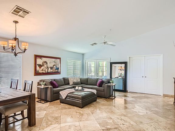 Live the resort lifestyle in McDowell Mountain Ranch (MMR). Located in the highly sought after master-planned community, this charming home backs to a desert wash with gorgeous views of the McDowell Mountains from the low maintenance, gated yard. The interior is beautifully updated and features a spacious open floor plan with vaulted ceilings and a neutral paint throughout. The home has been enhanced with travertine flooring in the living areas and high-end laminate flooring in each bedroom. The kitchen boasts crisp white cabinets, granite countertops, stainless appliances, and a reverse osmosis water filtration system. The spacious master suite offers double sinks, shower, separate bathtub and large closet. The third bedroom's entrance is through French doors and would be perfect for use as a home office.