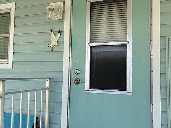 Enclosed front Florida room with new windows and sliding glass doors with blinds offers street view of this very quiet neighborhood.