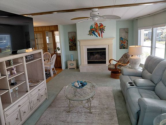 5 Star Sugar Creek 55+ Community Located in a 5 Star, 55+ age required retirement community. The current base lot rent for this home is $871.00 per month and includes garbage and lawn care. Indoor cats are welcome. Service and Emotional Support animals (dogs) are accepted, with proper documentation, and park approval. This nicely furnished corner lot home (wall art not included) has 1,320 square feet of living space, with 2 bedrooms, 2 bathrooms, living room, family room, Florida room and dining room. The living room has bay windows, a tiled fireplace, carpet and hardwood floors. The dining room has a built-in hutch with shelving and laminate floors. The kitchen has plenty of cabinets, a 4-year-old stainless steel refrigerator, wall oven, a large window over the double sink, vinyl floors and 2 pantries. The family room (currently configured as a office) is open to the kitchen, has laminate flooring and a large window. The guest bedroom is good sized with laminate flooring, a large window and a nice sized closet. The guest bathroom has a vanity with storage, a tub/shower combination and access to the hallway and the guest bedroom. The Florida room is accessed through the Family room. The main bedroom is spacious with laminate flooring, large windows and a walk-in closet. The main bathroom has a double sink vanity with storage, linen closet and a tub/shower combo. The Florida room is large with plenty of windows and access to the concrete patio, a great place for a BBQ. The shed has a washer and dryer, built in shelving and work bench to give you even more storage space. Sugar Creek is a private, family-owned community of 250 lots, sheltered among mature trees that provide shade and beauty. The lake sits in the center of the community, across from the clubhouse and pool area. Fishing is allowed in the spring fed lake, or you can enjoy the beaches that are just miles from your front door. Plenty of shops and restaurants are located close by. The clubhouse facilities include a heated pool, whirlpool spa, shuffleboard courts, horseshoe pits, billiards, and a library. You will enjoy bingo, cards, water aerobics and planned sightseeing trips. The calendar of events includes pool parties, potluck suppers, dances, and many special holiday events. Sugar Creek amenities include: Clubhouse with kitchen available for community use, WIFI and computers available for use in the clubhouse, Heated Pool with lounges, chairs and tables all around, Corn hole on the back deck, Bocce court, Horseshoe Pits, Shuffleboard courts with covered seating, Outdoor grill, Lake with fountain, Professional style pool table, Bingo, Bunco and other fun game days, Exercise classes in the clubhouse and in the pool, Lending library of books and puzzles, A large TV in the clubhouse, Washer and Dryers in the laundry facility, Car Wash Included in the monthly lot rent: Lawn mowing, twice weekly curbside trash pickup, Use of the community amenities, Maintenance of all common grounds and facilities. ***DISCLAIMER: The information in this listing is believed to be true and accurate and has been provided by the seller. Select Mobile Homes cannot guarantee or warrant the accuracy of this information or the condition of any property. Since the mobile home is being sold AS IS, we recommend that you inspect any home that you are interested in purchasing and recommend that the home be independently verified by appropriate professionals.