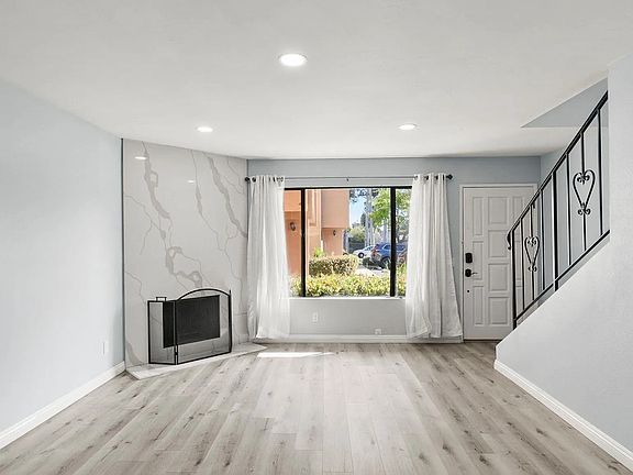RARELY ON MARKET 3 BEDROOM townhome in the heart of Mira Mesa! This move-in ready, fully remodeled corner unit offers the perfect blend of comfort, style and convenience featuring an open living room with cozy fireplace, an upgraded kitchen with quartz countertops & stainless-steel appliances, IN-UNIT laundry equipped w washer/ dryer & two assigned parking spaces. On the second level you will find 3 generously proportioned bedrooms each with built-in lighting and reach in closets. Enjoy multiple outdoor retreats including a large private patio for entertaining and two balconies off the primary bedrooms, perfect for morning coffee or evening relaxation. This 2-story gem is situated in the highly desirable gold creek community! Complex features 2 large community swimming pools, is conveniently located next to Hourglass park & within minutes to Miramar College, restaurants, shopping and I-15 freeway!
