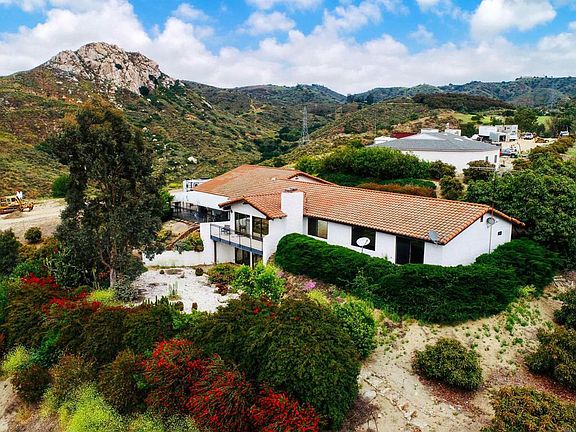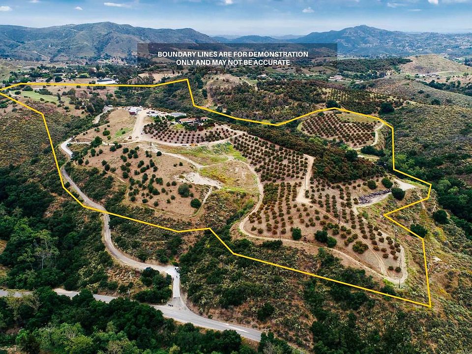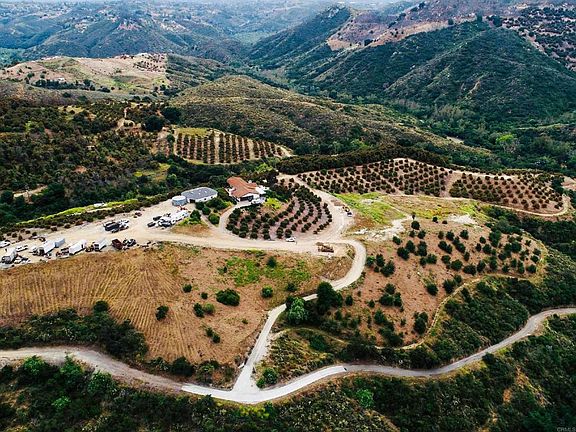 On well, solar and SDGE.* Introducing a remarkable property with two separate dwellings and addresses, spread across approximately 60 acres of land. Nestled within this expansive estate is an avocado grove with 1,100 mature and younger trees, accompanied by three water-producing wells with 2 additional water meters (on stand-by) and a sizeable 40,000-gallon holding tank. Recently equipped with solar power that powers the well pump and 2 additional electric meters for the homes. The barn is approximately 2,500 sq ft. The "Spanish motif" elevation larger residence, known as 10267 Sandia Creek built in 1977, occupies 25 acres and boasts a spacious 3,310 sq. ft. of living space. With its two-story layout, all rooms are conveniently situated on the top floor, while the ground level features a charming den. This residence has 4 bedrooms/2 full baths + 2 half baths. The 2nd home is situated on 33.65 acres, and is known as 4104 Mira Monte built in 1950, spans 1,904 sq. ft. and is 3 beds/2 baths The property itself is expansive, offering vast stretches of flat and rolling terrain, perfect for creating a retreat, a ranch, or expanding the existing groves with its flexible A70, or light agricultural, zoning. And don't miss the large outbuilding for additional farm assets and vehicles. This estate allows you to enjoy a country lifestyle while being conveniently located just a short ten-minute drive from Fallbrook Village. (Note: The smaller home's pool is empty and is a hazard, do not approach)