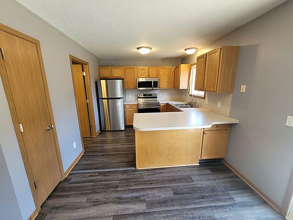 Completely updated with vinyl flooring, fresh paint and carpet throughout this 3 bedroom, 2 full bath home is sure to please! There's a large open concept dining/living area with sliders out to a deck, out building with storage, oversized one stall garage with opener, plenty of storage space, a beautiful backyard and so much more! Tenant is responsible for all utilities, lawn care, and snow removal. Interested? Complete a showing request form today! After a showing, all adults over the age of 18 must complete an application and receive full approval to move forward to signing a lease. Equal Housing Opportunity. Additional administrative fees due at lease signing may apply. See office for details.