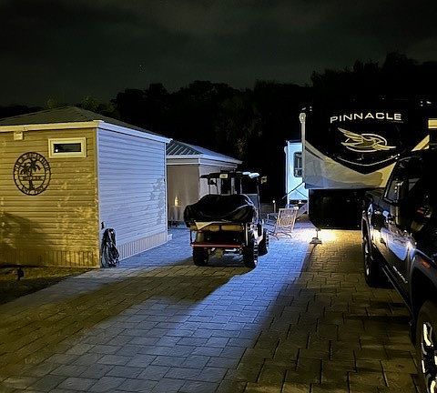 This RV lot is one of the larger lots in park as it is sized for a casida. It’s back border is on a conservation area and the front mostly overlooks green space . One of the more private lots in the park. There’s over $50k in upgrades including extra pavers, stone wall, gazebo and a finished shed that is all professionally wired, plumbed and finished. The Shed includes 3 piece bath, washer/dryer, mini split (AC) and can sleep two with plenty of storage. The Amazon Gazebo has two roof fans and a TV with lots of outlets. There are side curtains that can be lowered to offer extra privacy and warmth with a table fireplace. It Includes a large SS kitchen cabinet with a marble top and Blackstone BBQ grill beside it. All furniture including outdoor table, chairs and sofa are included. This lot is designed to be worry and maintenance free and is ready to move in and enjoy. The Shed and Gazebo weathered hurricane Ian with no damage. The lot sits high relative to the rest of park so it never floods. The lot is not landscaped because both neighbors have thick hedges and our HOA looks after any grass cutting. This gives the lot a bright airy feel with cooling breezes. The lot can accommodate any size RV and easily parks two or more vehicles as well. As with any lot in the park it has 50A plug in, sewer, water, cable TV and high speed internet.
