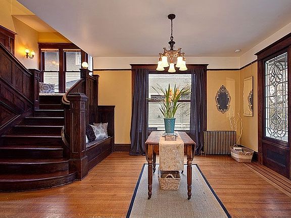 Architectural beauty & grace abound in this classic Craftsman home with stunning partial Views of Lake & Mountains. Spacious, gourmet kitchen with top-quality appliances & secret stairway to upper floor. Formal entry with grand staircase. Spacious dining room with coffered ceilings. Extra room on main floor with built-in bookcase and Views of Garden. Charming, updated bath on main level. Detailed woodwork throughout including trim, doors, and inlaid hardwood floors. 4 bedrooms + full bath on second floor. Finished room and play area on third floor. Generous deck for entertaining off kitchen. French doors to roomy wrap-around balcony and views. Grand front porch to welcome guests or enjoy your morning coffee. Updated electrical & plumbing. Easy access to 520. Neighborhood Description This is a sought-after high-end neighborhood on the crest of Capitol Hill. Great location: Blocks from Holy Names Academy & St. Joseph's, Stevens & Montlake Elementary. Close to 520, easy access to I-5 and I-90, two miles to Downtown shopping & events, Eastlake, Westlake, University Village Shopping Center, University of Washington, Fred Hutch, Swedish, Providence Health.