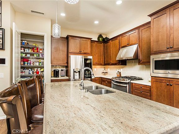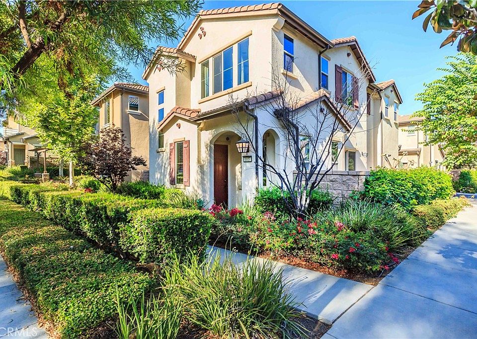 Welcome to Summerwind by builder Taylor Morrison! Incredible opportunity to own this former Model Home with tons of quality upgrades throughout including custom built in cabinetry, vinyl wood flooring on both levels, a stunning two toned kitchen with center island breakfast bar with granite countertops. The kitchen also includes stainless steel appliances and a separate pantry area. You will also find a built in wine fridge with built in cabinet and shelving, beautiful designer quality lighting fixtures in the kitchen and dining area, laminate wood flooring throughout and wood shutters. A fun wallpapered powder bathroom with pedestal sink and accent lighting. Upstairs is a full sized laundry room for convenience and 3 spacious bedrooms. The primary bedroom features a gorgeously designed bathroom with a large soaking tub and oversized shower glass shower, dual vanities all meticulously assembled with travertine, granite and marble detail. There is also a large walk in closet for convenience. All bedrooms feature ceiling fans and the shared upstairs bathroom has dual sinks and custom tile work. The garage is covered with Epoxy floors and includes a EV charger. You will not be disappointed with the quality upgrades in this home! There is no homes to the left or in front, there is a small private yard for a dog and beautifully maintained walking paths throughout the community! Other HOA amenities include an exercise area, horseshoe court, picnic area and manicured walkways framed with arches.