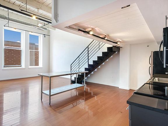 Custom built steel staircaseUpper mezzanine levelOversized windowsUltracraft adriatic shark cabinetryGreat light facing westBlack granite countertopsHardwood floors