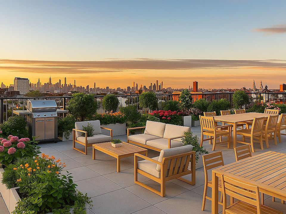 TEN27 is a striking contemporary addition to Bushwick, bringing a sense of refined modern living to one of Brooklyn’s most dynamic neighborhoods. Situated on a quintessentially picturesque, tree-lined stretch of Bushwick Avenue, the building blends clean architectural design with a calming, modern-zen atmosphere all while introducing an elevated luxurious, amenitized condo lifestyle to the future residents of this bespoke new 20-unit boutique condominium. Inside, residents enjoy beautifully crafted residences paired with thoughtful amenities, including garage parking, a state-of-the-art fitness center with NordicTrack equipment, a gracious arrival lobby with virtual doorman system for security and convenience, an elevator, and a gorgeous landscaped rooftop featuring BBQ grills, outdoor dining and lounge areas, panoramic Manhattan city skyline views, and private cabanas available for purchase.