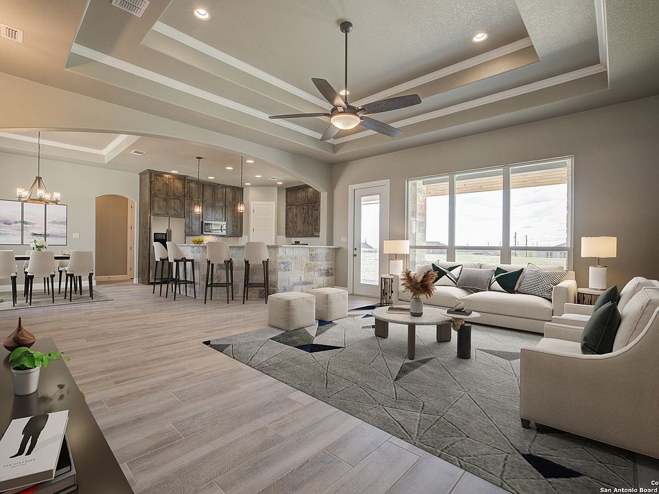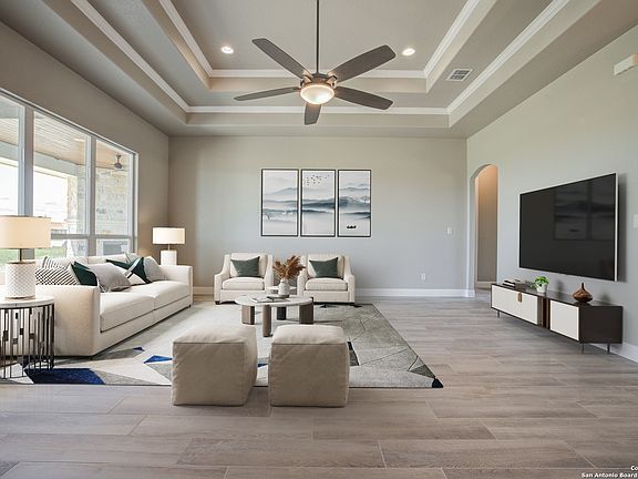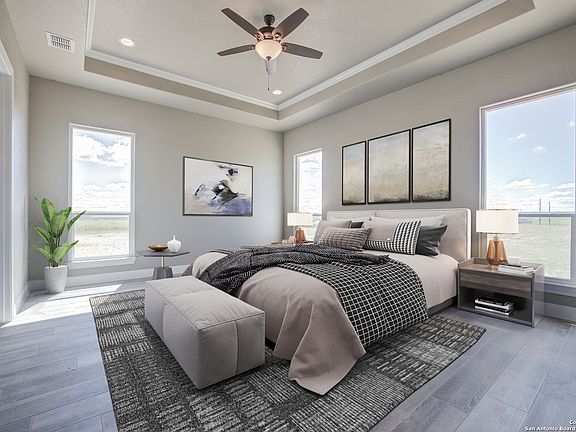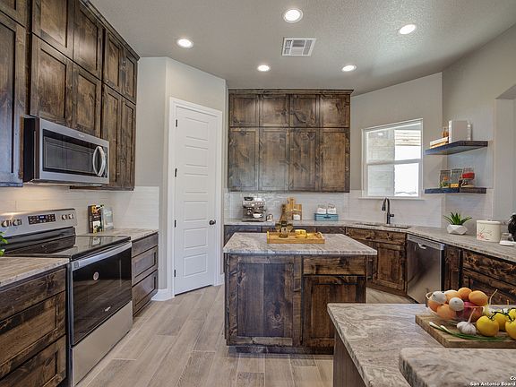 Stunning New Construction 4b, 2.5 ba single-story home in The Estates at Triple R Ranch. Over 700 sqft of covered outdoor porch space with extended country views and outdoor fireplace. Entertainer's kitchen w/ granite counters, center island, custom knotty alder cabinets, SS appliances, open to living. Double step 12' ceiling in the family room and huge windows create a stunning indoor/outdoor living space with abundant natural light! Spacious master bed & bath with separate sinks, massive closet that connects to the laundry room. Laundry room has custom cabinets with a hanging bar. Great natural light in all rooms and high ceilings throughout. Wood-tile floors throughout. Too many upgrades to list -- A must see!