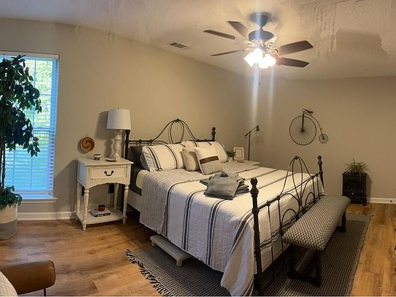 The main bedroom has a king bed, two nightstands with lamps, an ottoman, a dresser, large walk-in closet and its own full bathroom with a walk-in shower. The second bedroom has a queen bed, side tables, a dresser, large closet, a mirror and a chair. The third bedroom is set up with two twin beds, closet and a dresser. A 2nd full bathroom in the hallway includes a tub-shower combo and granite countertop.