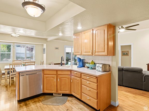 Rarely available Crown Point PUD, fully finished with all the features you might want in this rambler style home-vaulted family room, two gas fireplaces, second family room in the basement, main floor den for those who work from home, covered patio, laundry on main...this can be one level living if you like! Nice sized rooms, open main floor floor plan that's perfect for entertaining. HOA takes great care of the exterior yard landscaping, and snow removal. Really peaceful subdivision in South Ogden that's two blocks away from Glassman Way Park and green space!