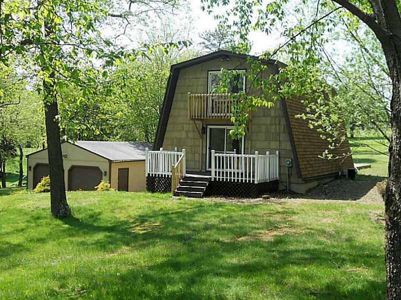 One of a kind A-Frame Style Home with an Two Car Detached Garage on 1.10 Partially Wooded Acreage. Updates include a New Roof, Newer Hot Water Tank, New Rear Sliding Glass Door, Newer windows, Furnace is approximately 10yrs. old. Most of the paneling previously in the house has been replaced with plastered walls.Entrance in Lower Level, to the right is a finished Family Room with neutral Berber carpeting. To the left is an additional finished room with ceramic tile flooring and a Hot Tub. There is an enclosed room to the rear containing Laundry Facilities, Newer Hot Water Tank and Furnace. The main level of the home has a large Living Room area with Berber carpeting and Sliding Glass Door Access to a new deck in the front of the home. On the main level is also a Full Bath and a Kitchen/Dining Room combo with Pergo flooring. The Kitchen has Oak Cabinetry with a neutral countertop, and Frigidaire electric stove and dishwasher. A newer Sliding Glass Door exits to an added 20x20 Deck overlooking the rear large treed yard. The upper level has three bedrooms and a full bath. The Master Bedroom also has a Sliding Glass Door exiting to a sitting deck. Minimal distance to the Irwin Country Club and located in the Penn Trafford School District. Home Warranty also included. For an exclusive showing, call Marsha Sebastian at 412-287-0440.