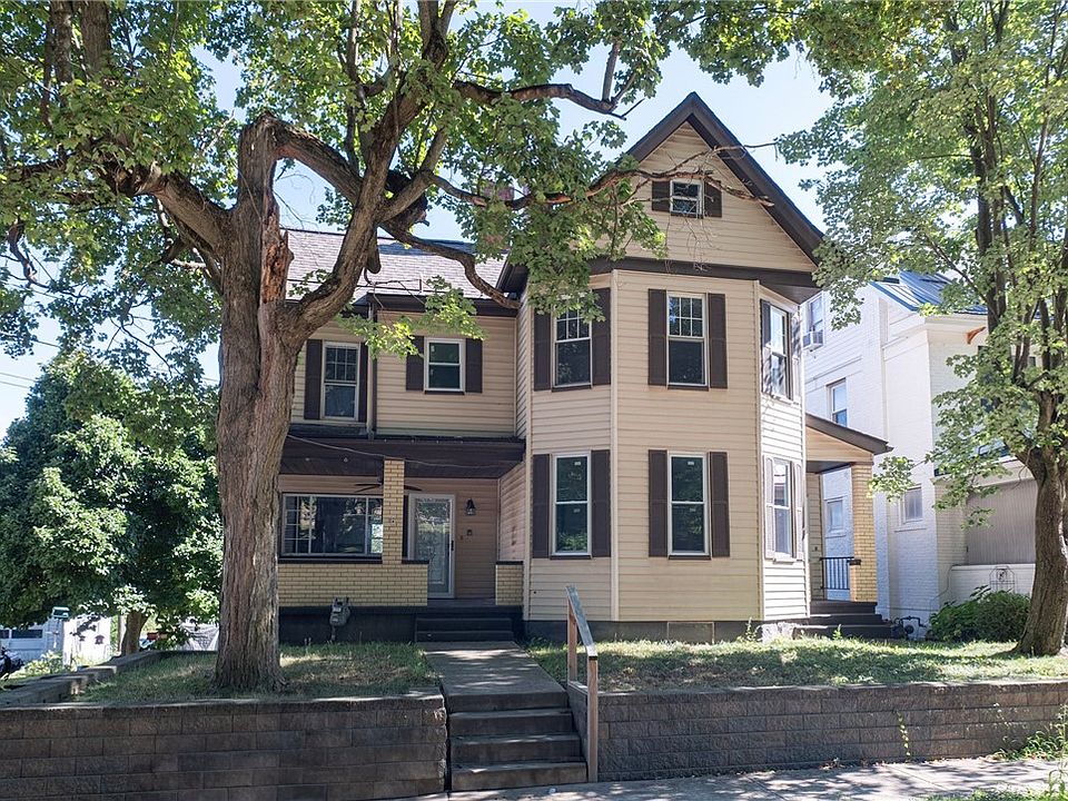 This stately home sits on a tree-lined street. The entry hall is a great space to remove your coat and shoes during inclement weather. From there you enter into the rotunda LR that is bathed in natural light. The open concept, equipped kitchen has quartz countertops, a center island and a large dining area that opens to a covered porch as well as access to the rear yard. The 1st fl. BR has access to the half bath. Upstairs you'll find 3 large BR's, the main bath, complete with deep soaking tub and access to the attic that provides plenty of storage. There is another full bathroom in the basement as well as a separate laundry area. Access to the 3-car garage is furnished through the rear alley.