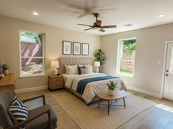 Embrace the lifestyle you've been dreaming of in this beautifully crafted two-story home overlooking the breathtaking Brazos River. Nestled in the desirable Western Hills community of Granbury, this residence blends contemporary elegance with the peace and privacy of nature right outside your door. Step inside and experience effortless flow through the open-concept main level. The heart of the home is the spacious kitchen designed for both everyday living and memorable gatherings featuring sleek white granite countertops, stainless steel appliances, and a style that inspires culinary creativity. The adjacent dining and living areas are warm, inviting, and filled with natural light. A convenient laundry room with full-sized connections and a stylish half bath complete the main living space. The primary suite is thoughtfully located on the first floor, providing a private retreat at the end of each day. A large walk-in closet and an ensuite bathroom with a stand-up shower and white granite counters elevate your comfort and convenience. Extra storage under the staircase keeps life perfectly organized. Upstairs, three additional bedrooms and a full bathroom offer versatility create a home office, guest rooms, or a cozy space for everyone to spread out. But the true highlight? Step out onto your wrap-around balcony and take in the sweeping natural beauty of the Brazos River. Whether sipping morning coffee or enjoying a peaceful sunset, this outdoor space will become the backdrop of your best memories. The outdoor lifestyle continues with a covered back porch ideal for weekend cookouts, entertaining, or simply enjoying the fresh Texas air. A two-car garage completes the home with secure parking and additional storage.