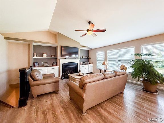 Impeccably Maintained, Beautifully Designed – A Rare Opportunity in O’Fallon School District! Step into timeless elegance and thoughtful design in this one owner home with unwavering attention to detail. The open concept layout is as functional as it is inviting, anchored by a gourmet kitchen featuring a butterfly island, staggered cabinetry, sleek modern appliances, and high end countertops, all seamlessly connected to the living and dining areas. The spacious living room is a true centerpiece, featuring a striking fireplace flanked by custom built-ins that offer both open display shelving and hidden storage. The main floor primary suite is a serene retreat, showcasing a coffered ceiling, walk-in closet, and a spa level en suite with soaking tub and separate shower. With four spacious bedrooms, and three full bathrooms, and a fully finished basement offering an expansive entertaining space, private guest quarters, and generous storage, this home blends comfort and versatility with ease. Enjoy peaceful mornings on the covered back patio and make the most of the level backyard - perfect for outdoor living. A brand new roof adds to the list of recent updates, and the oversized 3 car garage includes a tandem fourth bay or workshop space for added flexibility. Ideally located in the desirable O’Fallon School District with easy access to Scott Air Force Base and major routes into St. Louis, this home stands out for its pristine condition, thoughtful features, and prime location.