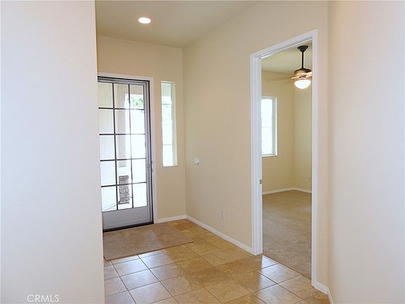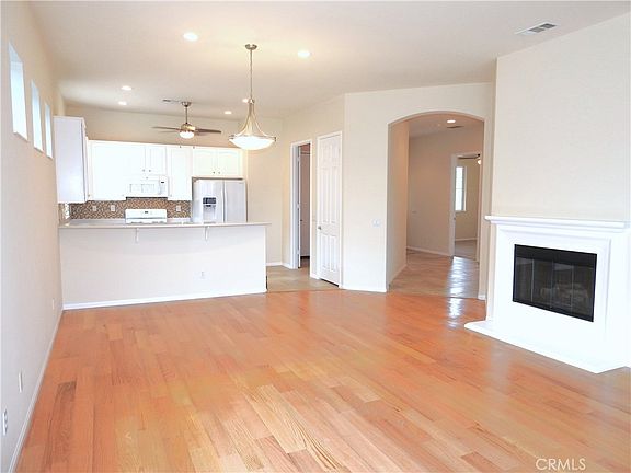 Take a look at this beautifully refreshed 55+ Solera Oak Valley Greens home waiting for a new owner who needs or desires a turnkey property. This desirable Trillion floor plan in the best 55+ community in the Inland Empire includes two bedrooms, two bathrooms, and a bonus room. The primary bedroom is very large with an over full-size walk-in closet. The primary bedroom also includes a fully accessible ensuite bathroom with separate shower and soaking tub. The guest suite has its own bathroom that is also convenient to the main living area, with two doors to access the guest room and living room. The light and bright kitchen has clean Corian counters and custom tile backsplash. The interior of this home has a fresh paint and new carpet, tiled hallways and kitchen, and upgraded hardwood flooring in the main living area. The attached 2-car garage is 100% finished and also newly painted. There is a separate laundry room adjacent to garage. The rear outdoor patio is covered with a pergola and the back yard includes tastefully colored landscape. The property has been well-maintained, including recent repairs, so this home is ready to move-in and enjoy! The multiple amenities offered in Solera Oak Valley Greens include golf course, clubhouse, indoor track and workout room, pools and spas, card room, meeting rooms, tennis and bocce ball courts, and many activities for whatever your interests may be.