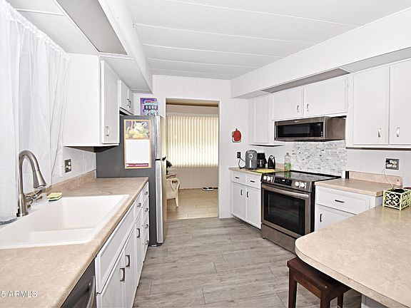 This Gorgeous & Spacious Superstition Country Home is Tucked Away on a Huge Cul-de-sac Corner Lot in this Charming Neighborhood, yet close to Freeways, Shopping, Golf & Other Amenities. Remodeled Inside & Out, this Rare Find is one of the Only Homes in the community with an ATTACHED GARAGE - Plus a Carport. This Stunning Two Bed, Two Bath Home - PLUS LARGE DEN/GUEST ROOM - incorporates Plentiful Natural Light and a Neutral Pallet with Open Architectural Design & Style. The Spacious Kitchen boasts an Abundance of Custom White Cabinets, Generous Counter Space AND a Breakfast Bar. The Ensuite Primary Bedroom incorporates Dual Granite Vanities, other Custom Finishes & More. Other Amenities include a New Roof in 2020, New A/C in 2023, Stainless Steel Appliances, Dual-pane Windows, Luxury... Staggered Bond Pattern Neutral Tile Throughout, a HUGE Guest Room/Den and a Breakfast Room. The Professionally Designed Private Backyard Oasis serves perfectly as a Sanctuary for Family or Entertainment Venue for a Gathering of Friends in the Custom Vinyl-Fenced Back Yard, or under the Extended 550+ sq.ft. Covered Front Patio as well. No HOA. Move in Ready. Plan your Tour Today!