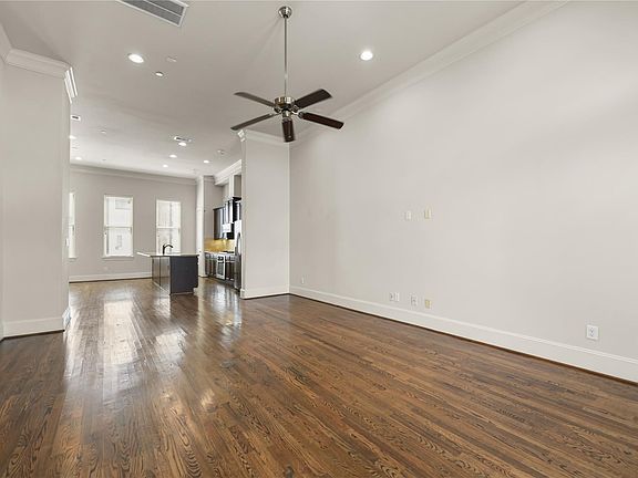 Beautiful 4 Story with downtown skyline views in a Pristine Community. Classic curb appeal, situated in the heart of EaDo. Walking distance to everything fun: Metro Rail Line, 8th Wonder Brewery, BBVA Compass Stadium, Discovery Green, Toyota Center, Minute Maid Park and trendy restaurants, venues and artsy lofts. Property features: Hardwood flooring and well kept carpet in bedrooms. Property has 4 bedrooms with 4 private bathrooms and 2 balconies with downtown views. The 4th level bedroom can be a flex bedroom or game room with access to the roof-top terrace. Granite counters, stainless appliances, refrigerator (included), washer and dryer (included). Community features a private pool that is only accessible by the units in the community. Downtown living at it's best with this Contemporary Townhome. Rooftop Deck with downtown views!