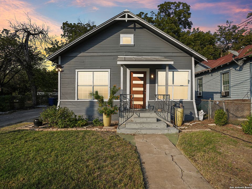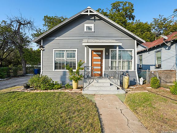 Welcome to your new private oasis. With a click of a button, open the automated gate to enter your historic bungalow. Step into a meticulously maintained home. Updated in 2019 to meet current code standards to include plumbing, electrical, new metal roof, pier and beam leveling, and new air conditioner two years ago. This home is move-in ready, pet friendly, on an oversized lot with a secluded backyard. Gas stove for chef's kitchen. Modern one and a half bathrooms, Farrow and Ball interior paint this year, lots of windows flooded with light. Location, location, location: one mile from The Majestic theater, one and half miles to The Pearl, with affordable Uber fares to the pulse of city life. Walk the river, San Pedro creek and minutes away from the new baseball stadium with a planned opening in 2028. This home offers two living areas, with the option of a third room to be used as needed.