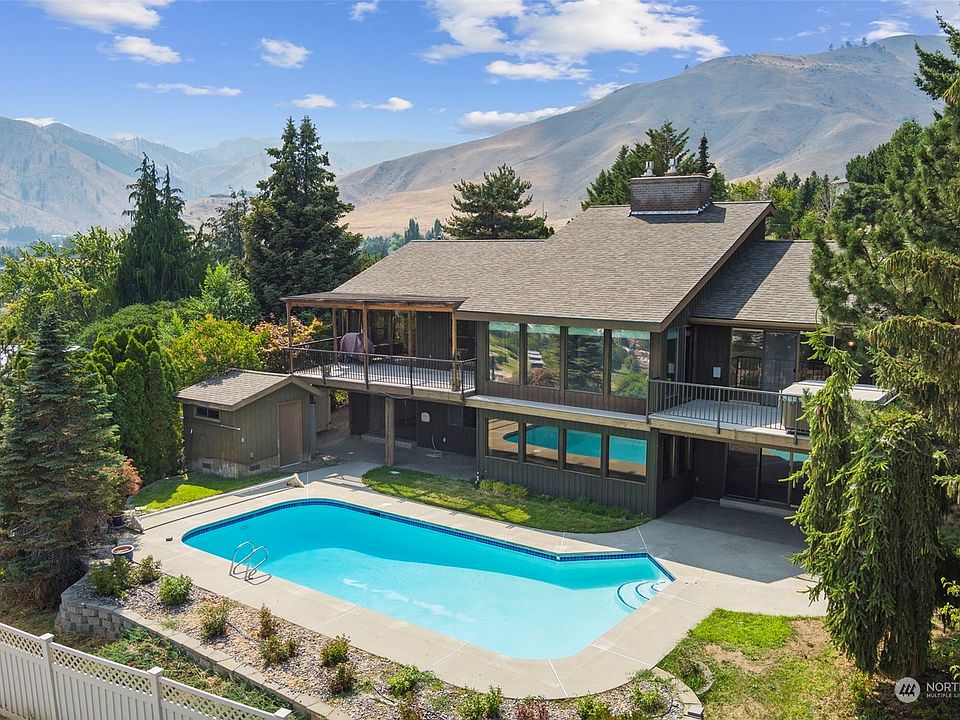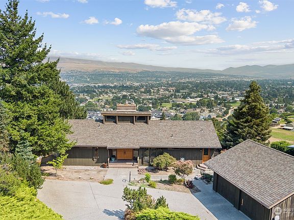 Perched atop Wenatchee, this stunning daylight rambler offers breathtaking Columbia River and Wenatchee Valley views from every room. Spanning over 3,400 sq ft, the home features a primary suite, vaulted living room, a spacious kitchen and laundry on the main floor. New interior paint, and fresh carpet provide for a seamless move-in experience. Enjoy the in-ground heated pool with panoramic vistas, perfect for relaxation or entertaining. Additional highlights include RV parking with hookups, a detached oversized two-car garage, and heat tape in the driveway for winter convenience. With two wet bars, grand living spaces, and mesmerizing views, this home is the ultimate entertainer's dream!