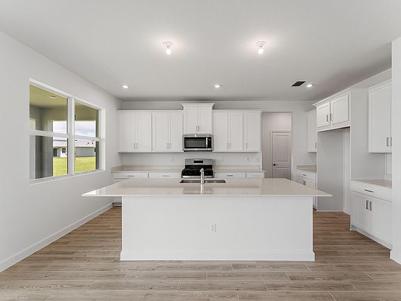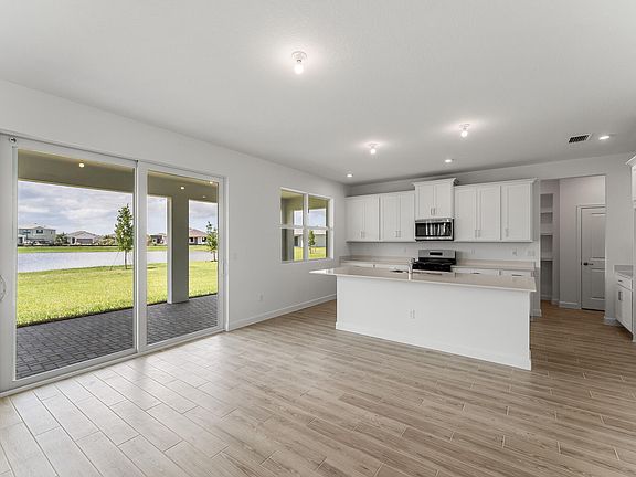Island breakfast barCovered lanaiSecondary bedroomsGreat roomOpen floorplanSpacious kitchenDining area