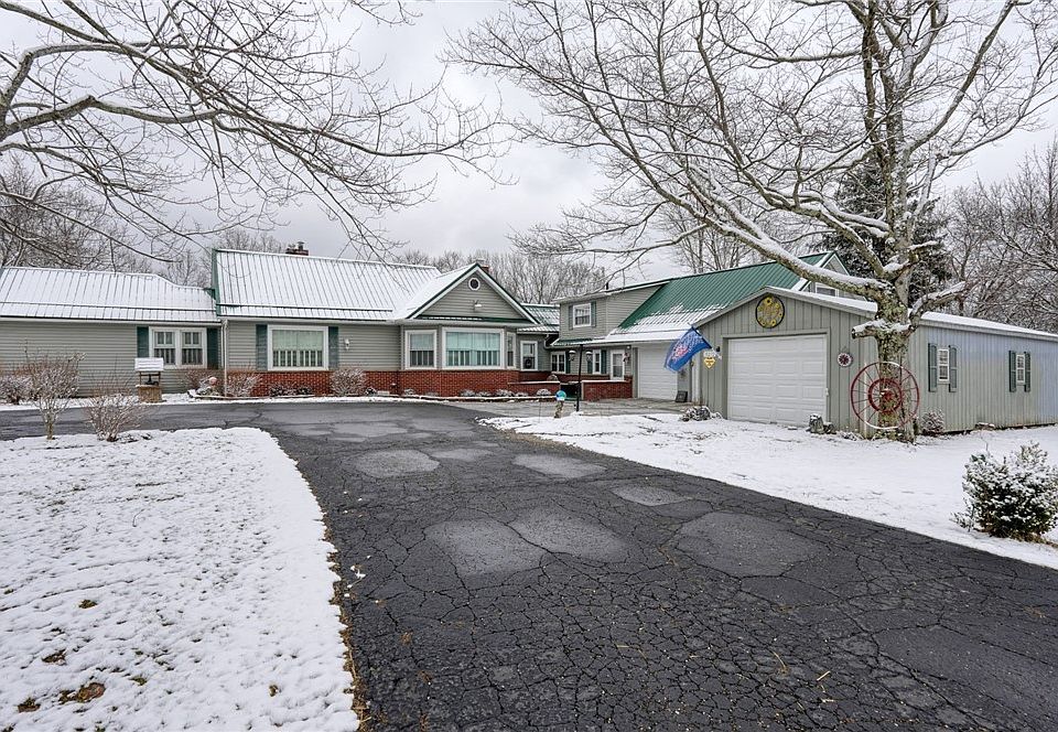 Beautiful country setting for this spacious home on 5+ acres. Not far from Salt Fork, I-77 & town. Newer in-ground salt water pool w/ turbo jet slide. Living room has brick fireplace w/ electric insert, wall mounted TV (stays), pretty window seat, huge dining room has counter & closet space, 2 kitchens, 1st floor family room, sun porch & rec room. Updates include: metal roof, most windows, whole house generator, plumbing, ext doors, & security system. Barn has 2 stalls & electric, pole barn & storage shed. MWCD assessment $6.00.year. Recently added livestock fencing & currently runs sheep on the property.