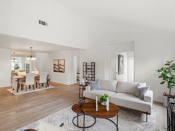 Located in the highly desirable gated community of Cross Creek Village in Rancho Cucamonga, this beautiful corner lot home offers a spacious two-story, open concept floor plan featuring 4 bedrooms and 2.5 baths. Upon entering, you'll be greeted by a large living room with high ceilings and a cozy fireplace, perfect for relaxing or entertaining. The first floor also boasts a spacious dining area and a modern kitchen, idea for hosting family and friends. Two bedrooms, including the primary suite with its own ensuite bath featuring dual sinks, are conveniently located on the first floor, along with a guest bathroom. Upstairs, you'll find two additional bedrooms and a full bath providing ample space for everyone. The home has been freshly painted, with new carpet in the bedrooms and luxury vinyl flooring in the main living area for a stylish and comfortable feel. All bathrooms have been fully remodeled, showcasing beautiful quartz countertops, and the windows are adorned with new roller shades. This home also features a 2-car garage with direct access and a laundry area for added convenience. As part of the Cross Creek Village community, you'll enjoy access to a refreshing swimming pool and spa. This home offers the perfect combination of modern amenities and a welcoming atmosphere in a prime location!