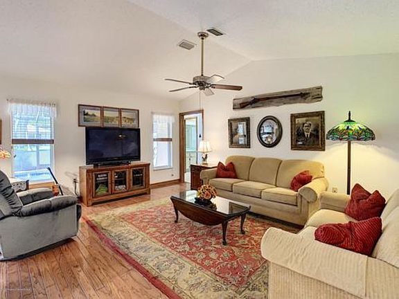 Wonderful 3 bedroom, 2 bath pool home features a nice open floor plan, real hardwood floors, resurfaced kitchen cabinets, plenty of kitchen storage, and a Florida Room. Brick Paver Drive in front and in rear surrounding pool. Pool is saltwater and is heated. The home sits on corner homesite and features sliding screen for the garage, tool storage cabinets annd removable hurricane shutters. Roof replaced in 2017. Newer AC as well. Schedule your showing now!