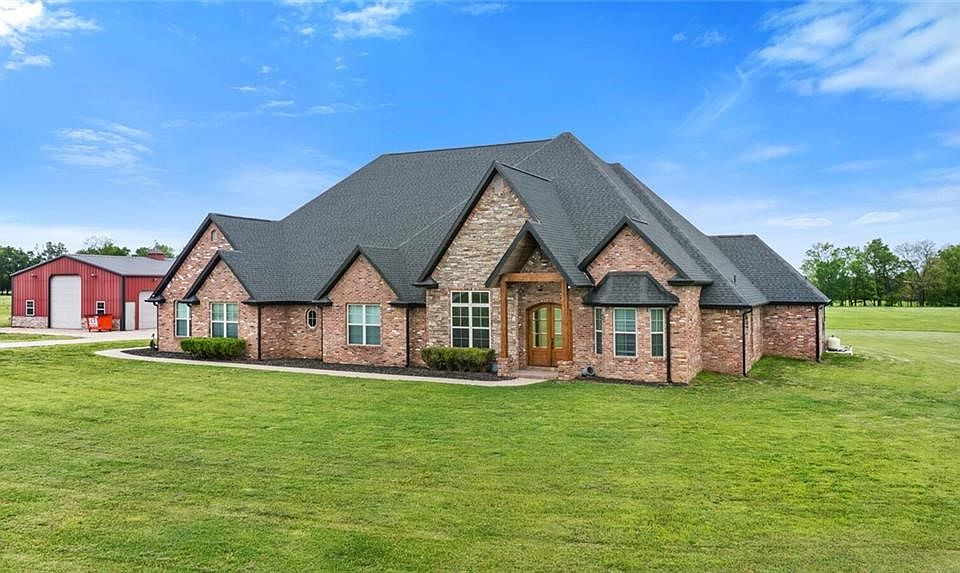 Discover this exquisite 4,610 sq. ft., 4-bedroom, 4.5-bathroom estate home set on 20 lush acres. This two-story gem offers a perfect blend of luxury and functionality. The expansive open entertainment area features a projection screen and a massive game room, ideal for hosting gatherings. The open kitchen, with granite and hardwood, seamlessly flows into the living room, complete with a cozy gas fireplace, creating a warm and inviting atmosphere. Step outside to the covered porch and entertainment area, where you'll find an in-ground saltwater pool, perfect for relaxation and outdoor fun. The master suite is a true retreat, boasting an oversized walk-in, dual entrance closet, and an open floor plan master bath designed for ultimate comfort. The property is adorned with lush grass, providing a serene and picturesque setting. Additionally, a large 60 x 40 insulated shop with electric and three overhead doors offers ample space for projects and storage. This gorgeous estate offers a unique blend of elegance.