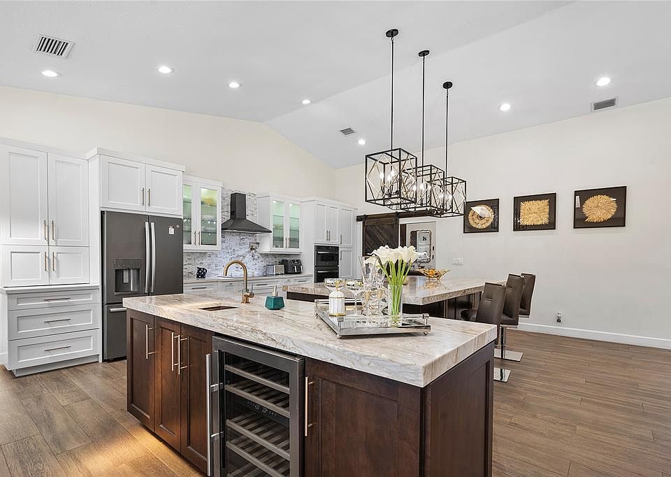 Presenting a fully remodeled 3/2.5 bath home in Boca Woods Country Club. This home features an open concept floor plan with custom upgrades throughout. Over $250k in renovations including a breathtaking chef's kitchen with quartzite countertops, custom cabinetry and an oversized wet bar island. Vaulted ceilings, skylights, and tons of natural light. Dual zone AC, central vac, hurricane impact windows and doors, there was no expense spared!! Enjoy your morning coffee on the patio with beautiful golf course view from the 15th hole, and of course the waterfall style pool.