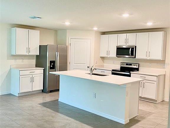 Enjoy this beautiful single-family home located in the desirable and tranquil community of Sunset Hills in Summerfield!! less than 8 miles miles from The Villages. This spacious one-story residence offers 1,828 sq. ft. of living space with 4 bedrooms and 2 full bathrooms, featuring an open-concept layout that seamlessly connects the kitchen, living, and dining areas. The modern kitchen is equipped with stainless steel appliances, including a refrigerator, dishwasher, range, and microwave, and boasts elegant quartz countertops in both the kitchen and bathrooms. Additional highlights include a two-car garage, a covered lanai perfect for outdoor relaxation, and a laundry room with a full-size washer and dryer. Ideally situated near schools, hospitals, shops, restaurants, and the newly opened Costco, this home offers the perfect blend of comfort, style, and convenience. Don't miss out on this exceptional opportunity