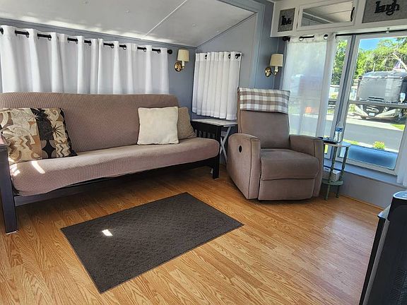 Welcome home! If you are looking for year around simple living or a winter get away I am yours. Lot lease is attainable and includes lawn, water, sewer, trash and internet. I am open, airy and very clean. The only items you need to bring are your personals as I am coming furnished to make your move easy. I also have a large 10x10 new shed which will provide you with nice storage. Community has a quiet rural location but still close to shopping, dining, I75 and the Webster market. Sunshine Village of Central Florida has nice amenities including a swimming pool, clubhouse, pickle ball and is pet friendly. Call today to reserve a spot to see this home.