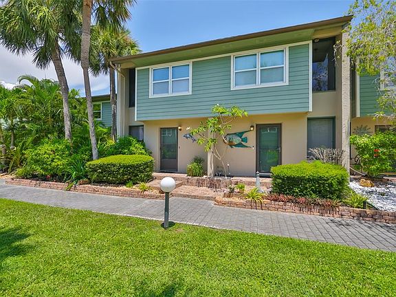 The waterfront community of Anchor Point has a lovely 2 bedroom, 2 bathroom fully furnished turn key townhouse style condo unit for sale. This is the perfect unit to call home, use as a second home or as an investment for monthly rental. The unit has been updated with easy care wood look ceramic plank tile throughout the first floor. New shaker style white cabinet, granite countertops, white subway tile backsplash and pots, pans, dishes, utensils, and appliances make the kitchen bright and efficient. There is a large pantry and extra storage under the stairs. The kitchen leads to the comfortable dining and living area and cozy screened lanai with outside storage. The 2 bedrooms featuring a primary suite with a walk in closet, full bathroom, and a private balcony, an additional bathroom and a laundry closet with a full sized washer and dryer and linen closet complete the upstairs. Cool off with steps to the community pool or gather with friends in the community center with indoor and outdoor spaces available. Sit by the water and check out the dolphins and other sea life. Docks are available for $170/month. (Best bargain around!)