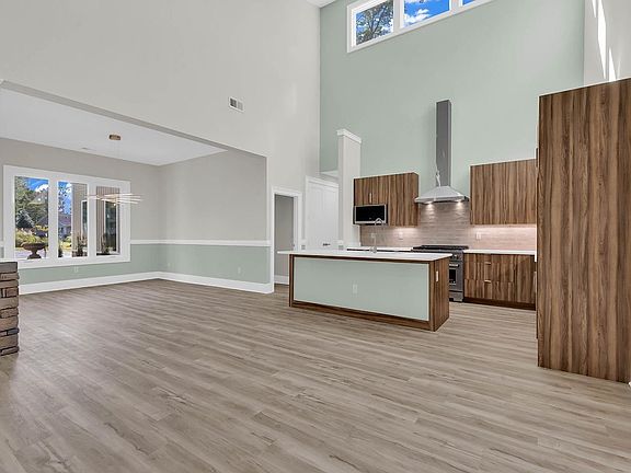 Stunning rooflinesWide wraparound lotStone entrywayZline six-burner gas rangeTextured stone backsplashCustom woodworkItalian cypress trees