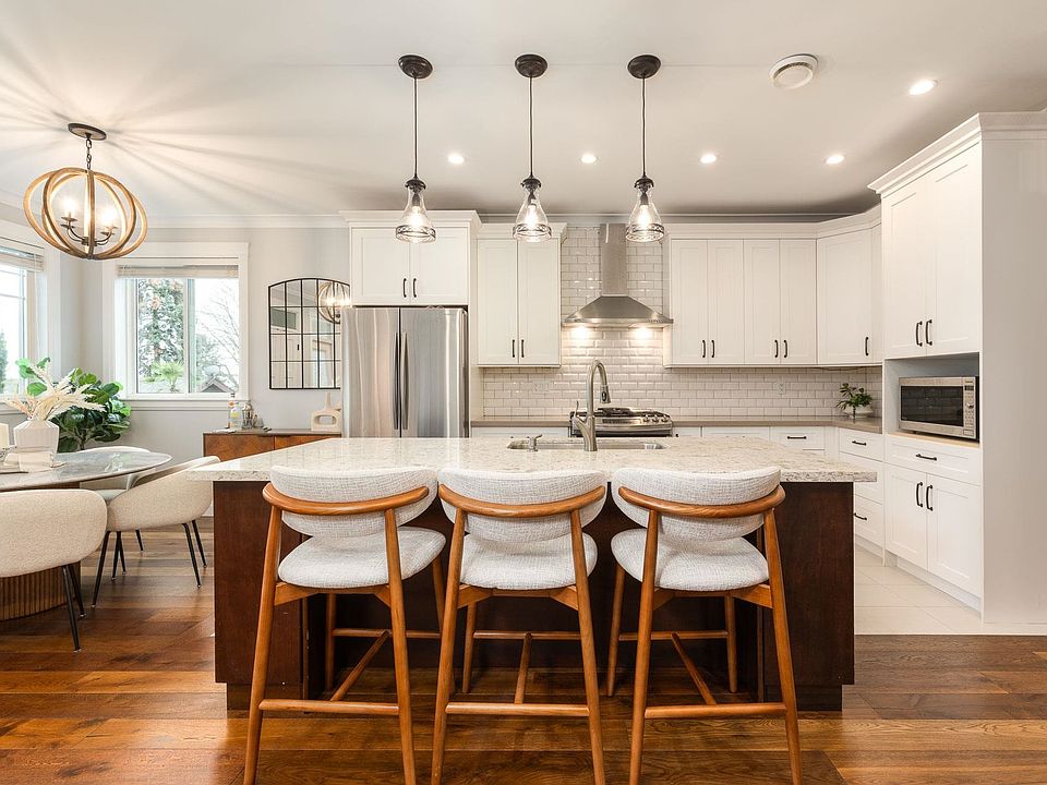 This 2016-built Craftsman-style home blends character, comfort, and thoughtful design. Featuring 2,218 sf of living space w/ 4 bdrms and 4 baths, incl a self-contained 1-bed mortgage helper. You'll love the open concept main living space w/ lg kitchen complete that flows seamlessly to both dining and living rooms. Also on the main is a den/office w/ cosy f/p. Upstairs are 3 bdrms incl a spacious primary w/ vaulted 10-ft ceiling, W/I closet and ensuite w/ deep soaker tub and sep walk-in shower. Laundry also on second level. This home offers h/w floors, high ceilings, A/C, two sep storage rooms, 2-car detached garage and more. Close to school, parks, shops and transit.