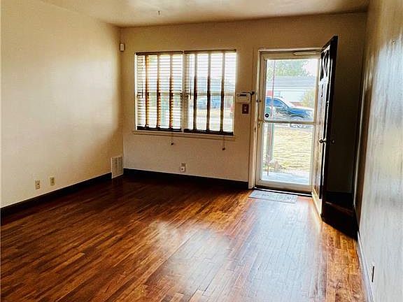 Move in ready 3 bedroom 1 1/2 bathroom home minutes from Altus Air Force Base. This home features original hardwood floors. Eat in kitchen is directly off the living area giving this space an open concept feel. Large windows let in plenty of natural light. Master bedroom is a good size and features a half bathroom. The 2 remaining bedrooms are large with custom wood doors giving them a rustic feel, large and spacious with plenty of room for bedroom furniture. Large laundry area in garage along with shelving for storage. Spacious backyard is completely fenced in chain link with privacy fence across front. This home is a must see! Call to schedule your appt today!