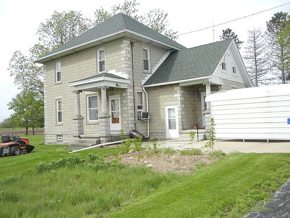 Back on the market. 4 bedroom, 2 1/2 bath 2 story home on 5 acres to be divided from 40 acre parcel. Beautiful oak woodwork with built in china cabinet in dining room. 3 car garage with additional storage attached and 45 x 72 pole barn with concrete floor and 2 entries. Taxes are for the 40 acre parcel. Will not pass FHA guidelines because it doesnt have a separate pin. To Be sold "AS IS"