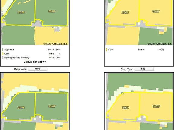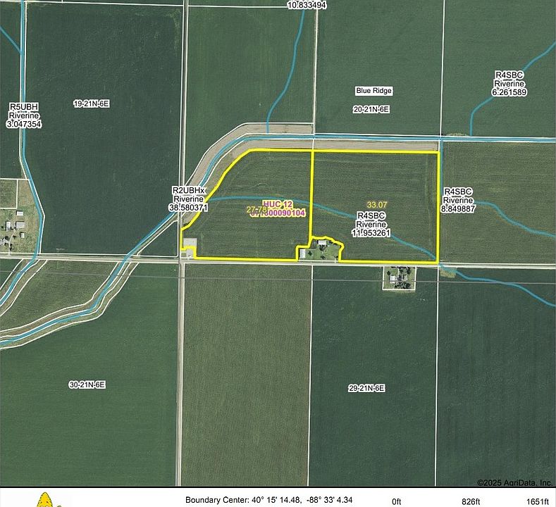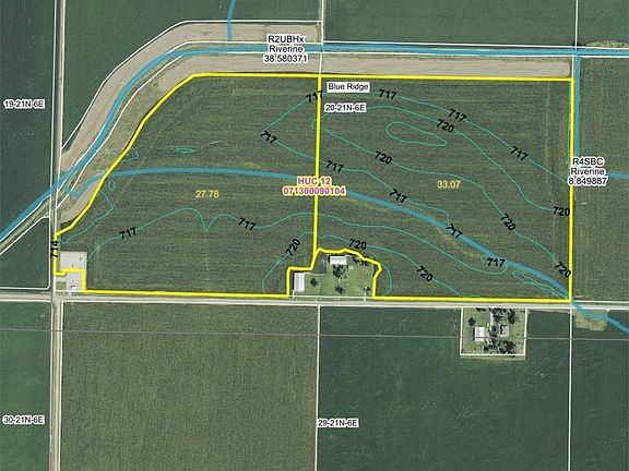 74.54 acres Class A farmland in Blue Ridge Township (Sec. 20), Piatt County, just NW of Mansfield. Excellent county-road frontage near elevators, with a 2.10 acre homestead featuring two outbuildings (48 x 90 & 42 x 80), electric, and a well. Recent reported yields: 280 bu/ac corn, 91 bu/ac soybeans; 8.44 CRP acres @ $415.26/ac.