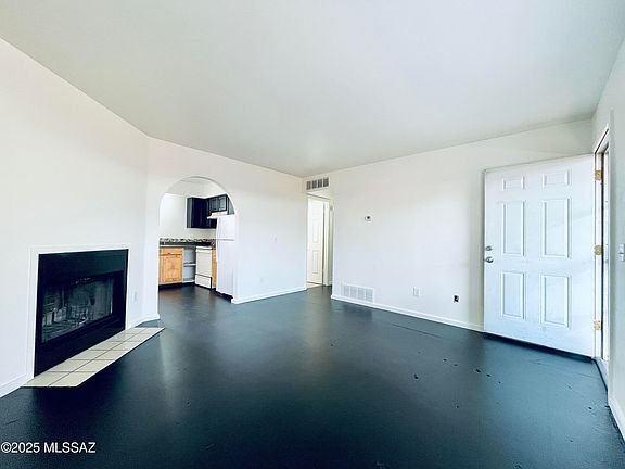 CENTRAL Tucson property! This 2 bedroom, 1 bath unit is biking distance to UofA. Inside there are concrete floors throughout (no carpet!), living room is bright with cozy fireplace in corner. Off the kitchen, slider door opens up to large back yard, plus washer & dryer in storage unit. 1 covered parking spot on large lot. Call today