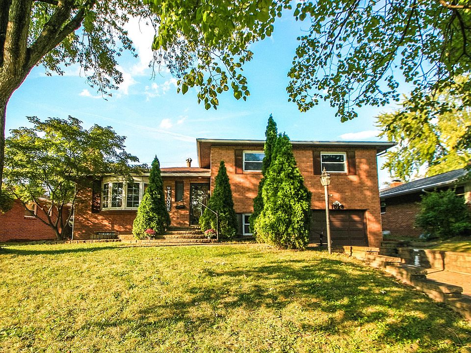 Fantastic opportunity to own this brick 4 level split. Very spacious! Wood floors in much of this home. Huge fenced in yard, with a shed and a huge patio. Partially finished lower level. No small bedrooms here! All three bedrooms are large! Wood burning fireplace. 1 1/2 bathrooms. Black kitchen appliances stay with the home! Lots of cabinets in spacious kitchen.