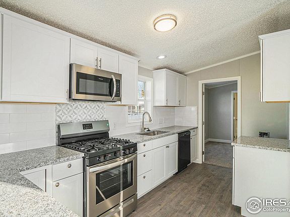 Beautiful fully remodeled 3 bed 2 bath home. All new flooring and carpet. New two tone paint throughout. All new white shaker kitchen cabinets and granite countertops w breakfast bar and under mount sinks. Custom tile backsplash. All New kitchen and bathroom fixtures. New SS Appliances. Buyer to verify measurements and sq ft. Manufactured home home on permanent foundation. Own the land, no HOA or Lot rent. RV parking. Fenced in back yard. Agent Owned