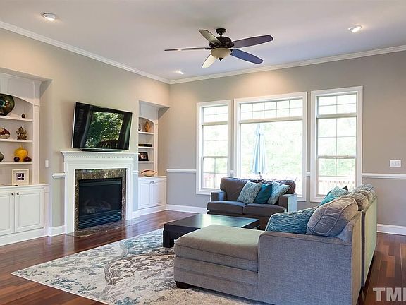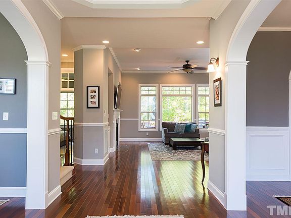 Spacious mint-condition luxury hm w/recently upgraded carpet/int paint. Gourmet ktchn w/gas range, wall oven/microwv, isl w/veggie sink, gran, tons of cab space; hrdwds thruout 1st flr living areas; keeping rm off ktchn w/FP; addtl rm/full bthrm on 1st flr; Jack&Jill bathrm on 2nd flr + addtl full bath; spacious 2ndry bdrms; huge 2nd flr master ste w/2 WI closets, jacuzzi tub, exercise rm; bonus rm on 2nd flr; 3rd flr theater rm w/wet bar&1/2 bath; 2scrned-in balconies; 2staircases; wooded, priv bckyrd
