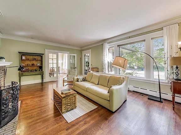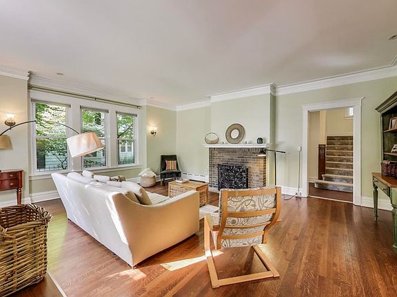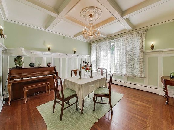Gas fireplaceWood-burning fireplaceOriginal chandelierFenced-in backyardCoffered-ceiling dining roomBluestone pathwayWindow-lined vestibule