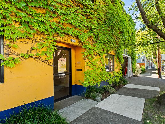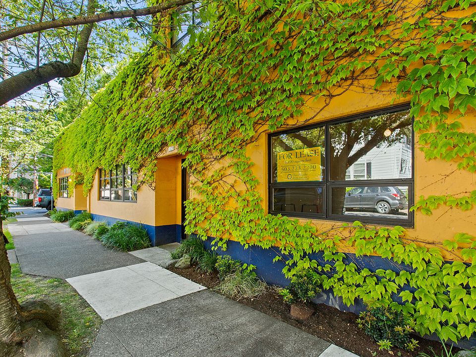 1028 NW 18th is a modern retail/office space offering a perfect blend of style and functionality. Available for lease at $2400 per month, the 1100 square feet office is spread across two levels. It includes a private entrance, private bathroom, and central heating and air conditioning. Inside, the office has a spacious layout on two levels, providing flexibility to design the workspace to suit specific needs. The exposed wooden trusses create a sense of openness and architectural interest. Large windows and skylights ensure that natural light floods the space, creating a bright and inviting atmosphere. The building's facade is a vibrant mix of bright yellow with deep blue trim which is enhanced by lush green ivy. A well-kept sidewalk leads to the private entrance. Adjacent to the entrance is a neatly maintained planting area, contributing to a welcoming and comfortable environment. This exceptional office space is ideal for businesses looking to inspire creativity and productivity in a modern, stylish environment. Located between the Pearl district and Northwest Portland's trendy shopping districts, it is close to Portland Streetcar, bus lines, and I-405. Schedule a viewing today to discover how this unique space can become the cornerstone of your company's success. Single-Story Retail and Office Building