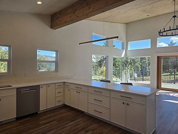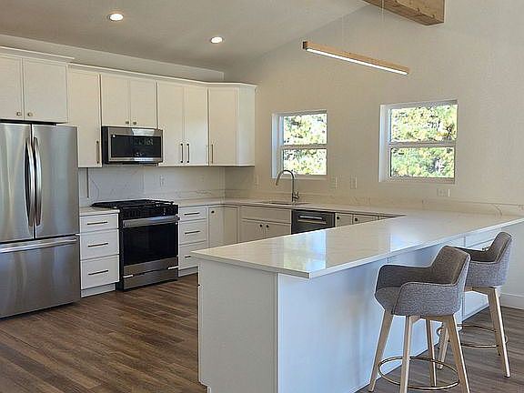 Location, Location, Location. This beautiful 1/2-acre property is surrounded by horse properties, offering a tranquil escape. The new modern rustic home boasts 3 bedrooms and 2 bathrooms, featuring numerous upgrades throughout. The kitchen boasts thin shaker cabinets, a cabinet-depth refrigerator, a sleek microwave, and a gas stove that doubles as an air fryer. A quiet Bosch dishwasher and a beautiful coffee/tea bar add to the functionality. The breakfast bar measures 11.3ft. An electric fireplace creates a cozy ambiance. The master bath is a luxurious space with a rain showerhead. The master bedroom is filled with natural light and features a spacious walk-in closet with washer & dryer hook-ups. The deck measures 35x12 and is the perfect spot to relax and take in the views. The garage is equipped for a dog wash, complete with a 50-amp outlet for RVs, and has an 8-foot height. The home is pre-wired for an air conditioning unit and includes a convenient tankless water heater. The lower bathroom features a 17-inch deep tub, perfect for relaxation, and a towel warmer to keep things cozy on chilly days. You'll enjoy having a washer & dryer on the lower level and upper level.