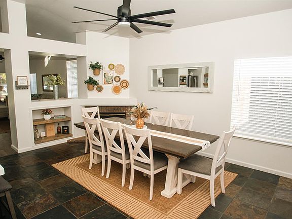Welcome to this beautifully maintained single-story home in Turlock, CA, offering 4 bedrooms, 2 bathrooms, and 1,603 sq ft of comfortable living space on a generous 7,450 sq ft lot. From the moment you arrive, you'll appreciate the nicely landscaped front yard, great curb appeal, and a 2-car attached garage. Step inside to find high ceilings, recessed lighting, and an inviting layout designed for both everyday living and entertaining. The updated flooring features wood laminate throughout the main areas, tile in the kitchen, and cozy carpeted bedrooms. The spacious kitchen includes a center island, stainless steel appliances, and plenty of counter spaceperfect for meal prep and gatherings. The adjoining dining room offers charm and warmth with its brick fireplace and easy access to the backyard, ideal for indoor-outdoor living. Both bathrooms are well-appointed, with one featuring a dual-sink vanity for added convenience. With its functional layout, thoughtful upgrades, and prime location, this home is move-in ready and waiting for its next owner. Don't miss the opportunity to make it yours!
