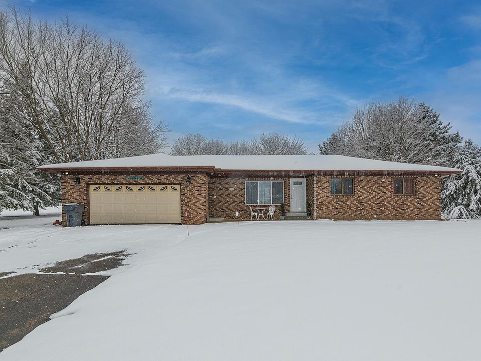 Lovely 3 bedroom, 3 bathroom Brick Ranch on 5 acres! Backs up to a field so you can enjoy all the wildlife from the 3 seasons room. The spacious main floor master suite has a completely new bathroom & 2 closets. The main floor has new floors, paint, trim, doors & windows. The 2nd main floor bathroom has been completely updated as well. Convenient office/entry right off of the garage entry to the home. The space continues as you head downstairs to a large family room, recreation area, 3rd full bathroom, and loads of room for storage. The electrical panel is upgraded, the water softener is new, it has a new on demand water heater, new well pump, new roof & new soffit. As you exit the home there are many flower gardens & trees. The 30' x 48' pole barn has 3 overhead doors & a storage loft.