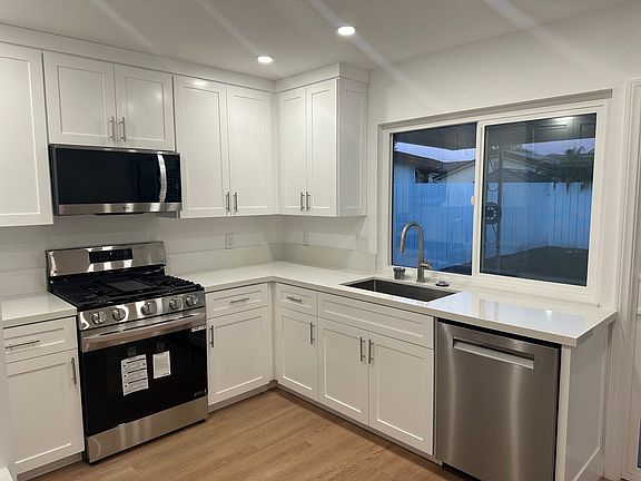 Step into this newly and completely renovated single-family home featuring modern finishes and thoughtful upgrades throughout. Enjoy a brand-new kitchen equipped with LG stainless-steel appliances, including a microwave, stove, and dishwasher. The home boasts luxury vinyl plank flooring, fully remodeled bathrooms, and all-new doors and windows for improved comfort and energy efficiency. A brand-new roof is also being installed this week for added peace of mind. The spacious backyard includes a covered patio perfect for outdoor dining, entertaining, or relaxing. Located in a quiet neighborhood with close proximity to multiple shopping centers, restaurants, and everyday conveniences, this home offers both comfort and accessibility. Perfect for anyone seeking a move-in-ready home in a highly desirable Mira Mesa location. Home has been fully renovated. Everything is new. Renter is responsible for all utilities (water gas electric). One year lease. No smoking and no pets.